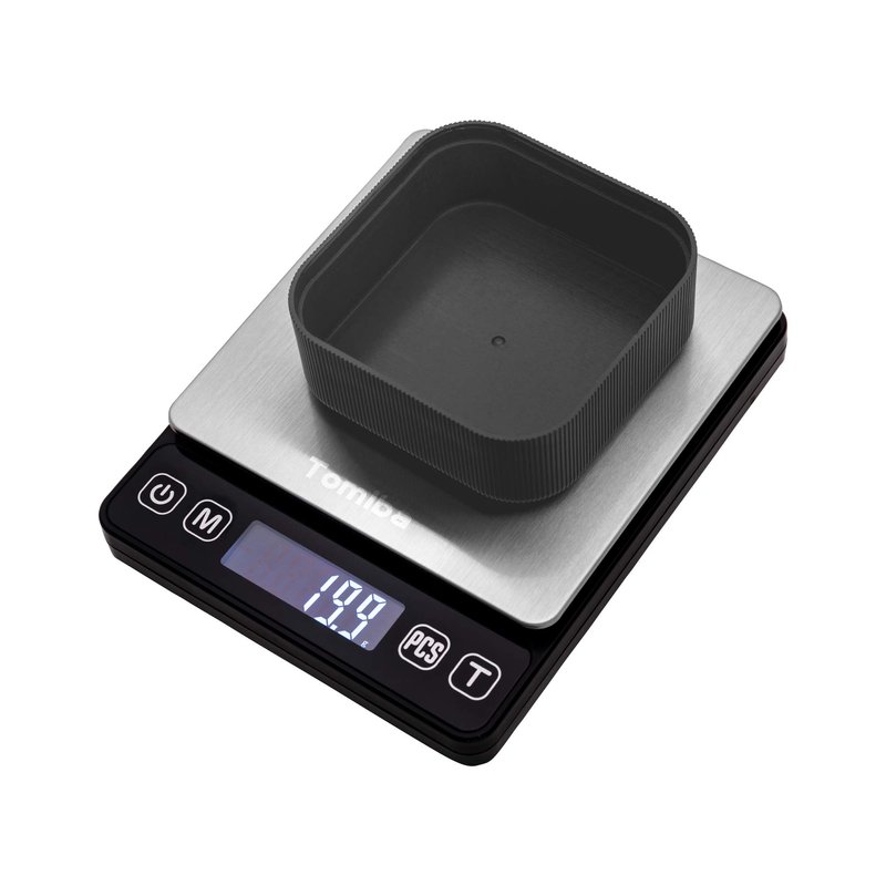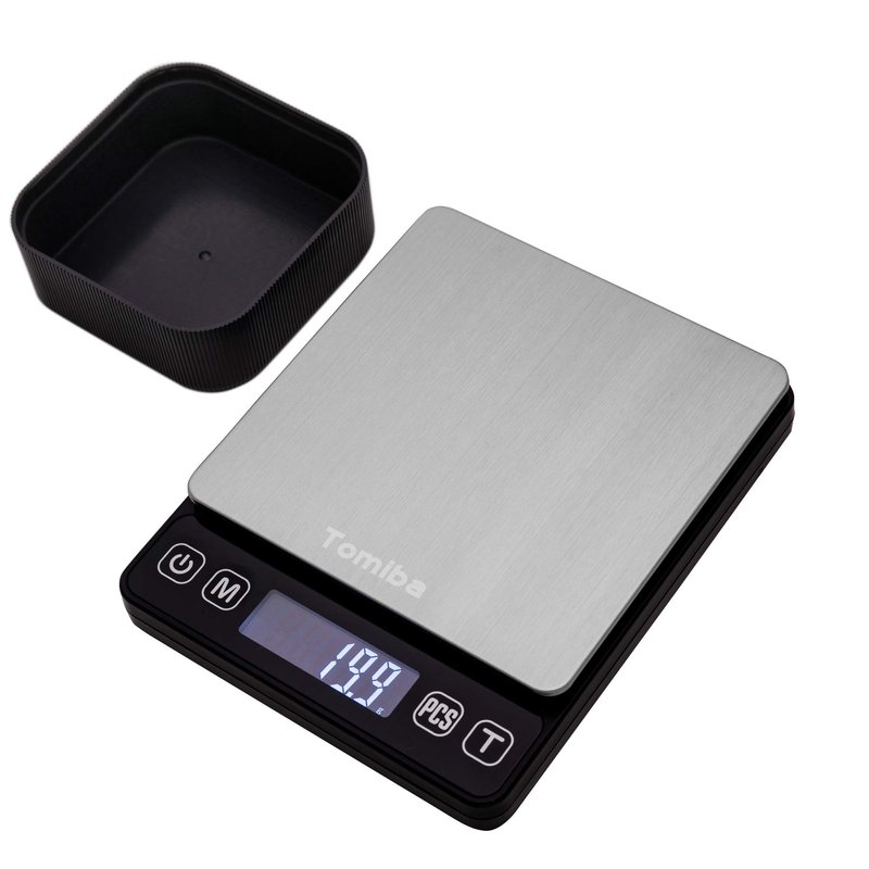 - TOMIBA Small Digital Scale: Stainless steel built for easy maintenance and reinforced platform strength. Includes platform and scale cover for safe and effortless storage, which can also be used like two trays.