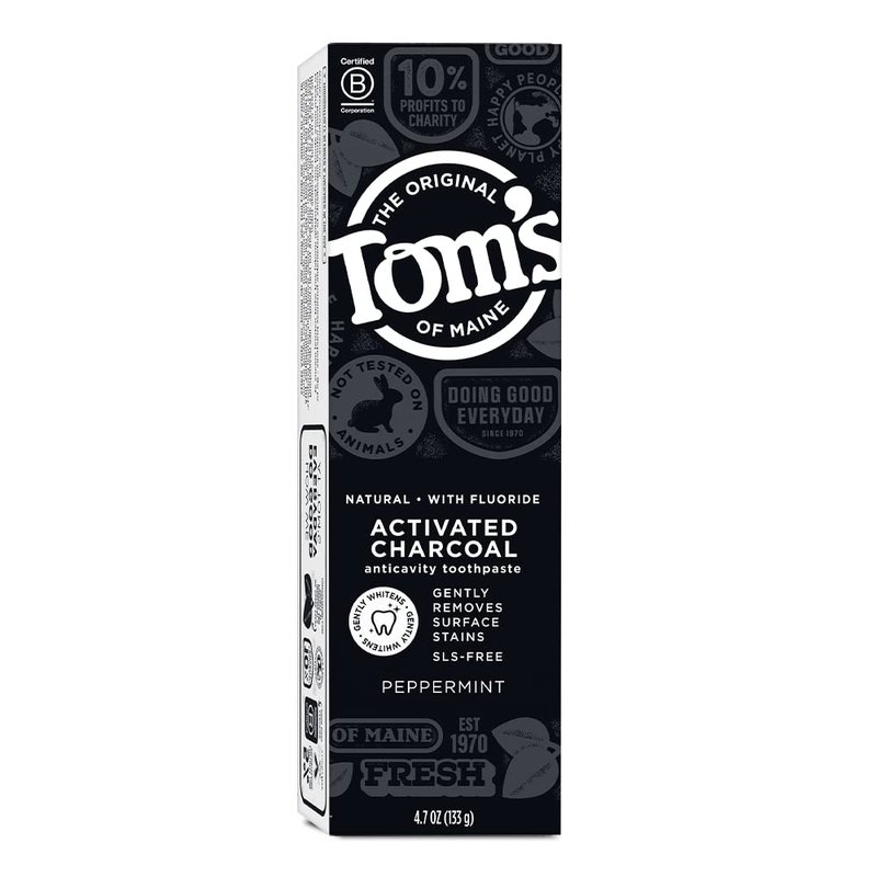Tom's of Maine Activated Charcoal Whitening Toothpaste with Fluoride, Peppermint, 4.7 oz.