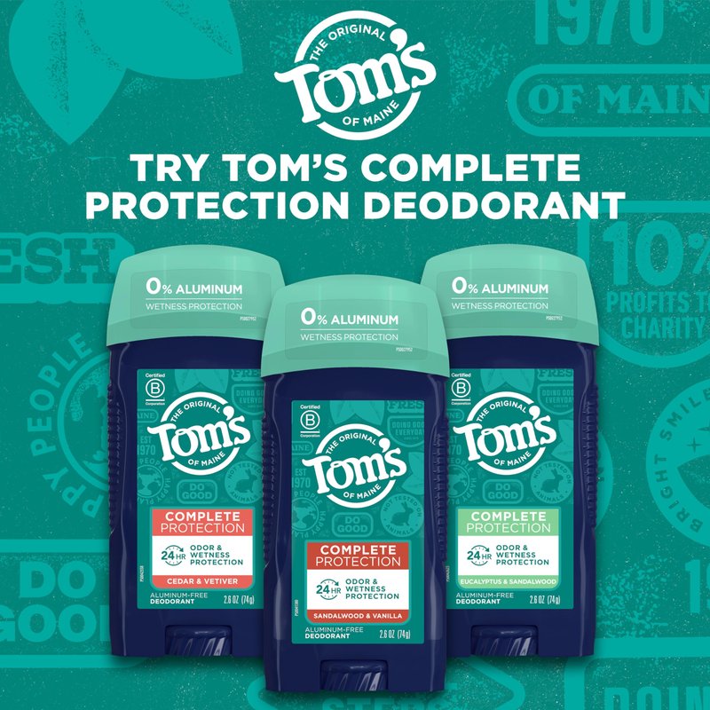 - WHAT YOU'LL GET: One 2.6-ounce stick of Tom's of Maine Complete Protection Aluminum-Free Natural Deodorant in Sandalwood & Vanilla scent