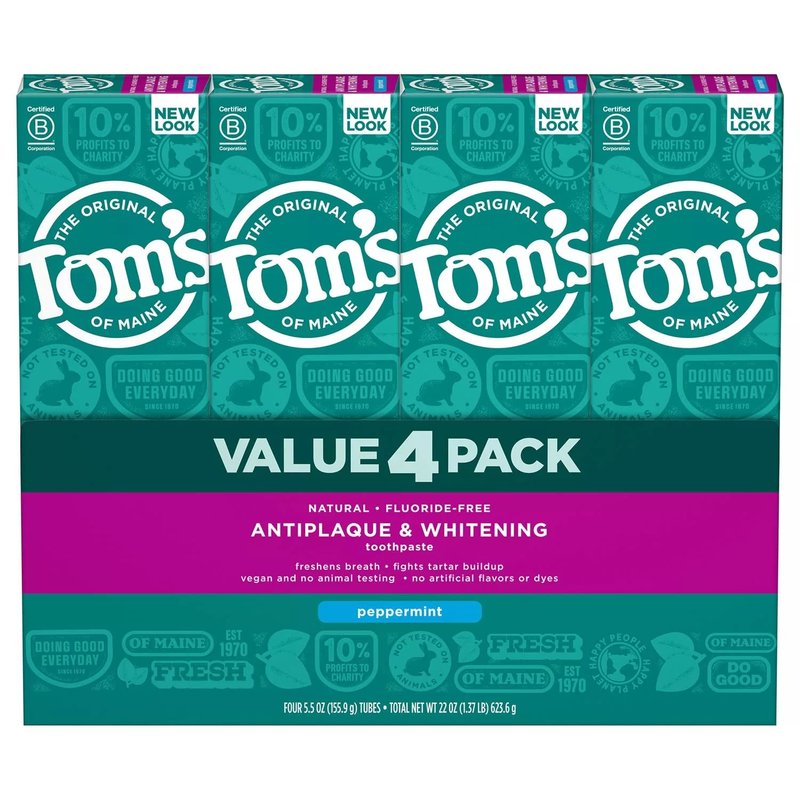 Tom's of Maine Fluoride-Free Antiplaque & Whitening Toothpaste, Peppermint (5.5 oz., 4 pk.)