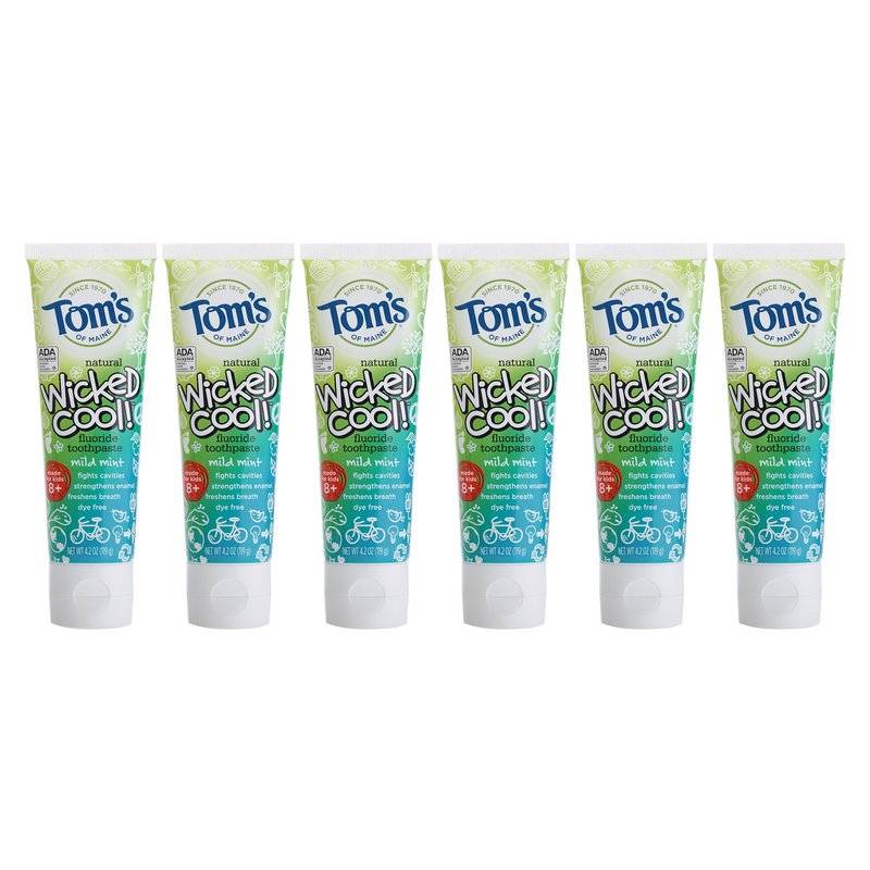 - HELPS PREVENT CAVITIES: Contains 6 - 4.2-ounce tubes of natural kid’s toothpaste in Mild Mint flavor with fluoride. The only natural toothpaste for kids with fluoride to be ADA accepted to help prevent cavities, Tom’s Wicked Cool Fluoride Toothpaste uses calcium and silica to gently clean.