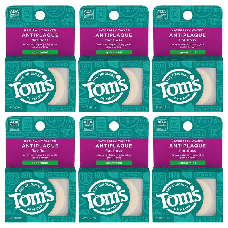 - WHAT YOU'LL GET: Six 32-yard packs of Tom's of Maine Naturally Waxed Antiplaque Flat Floss in Spearmint Flavor