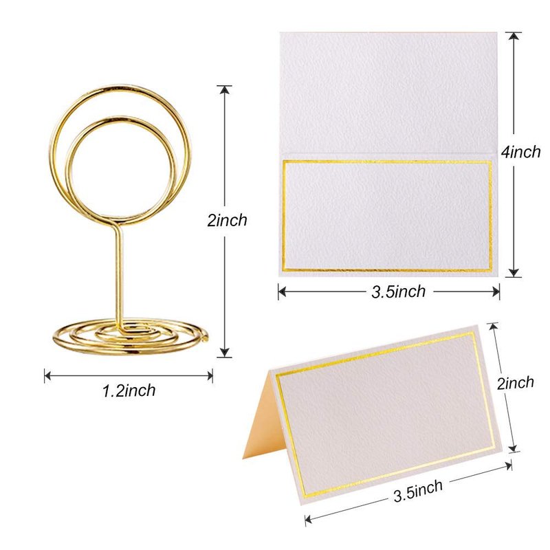 - 【Perfect Match】- The package contains 24 x place card holders and 24 x blank place cards with gold foil border, the blank table numbers card perfectly match the gold table number holders, so you don't need to pay extra efforts to search for the best style-matching cards. Write down a note on the card to express your inner feelings, or you can write a recipe to add some pleasant atmosphere!