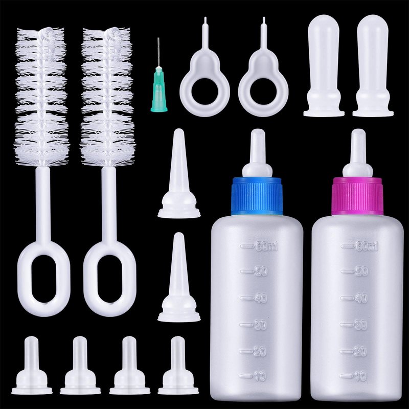 - Package content: package comes with 2 sets of newborn puppy supplies, including 2 pieces of puppy bottles for nursing, 10 pieces of replacement nipples, 2 pieces of cleaning brushes, and 2 pieces of bottle opening needles, suitable for puppies, kittens and small wild animals; The nipples come in a variety of shapes for different uses to meet the different needs of small pets, designed for hand feeding puppies, kittens and other newborn small animals