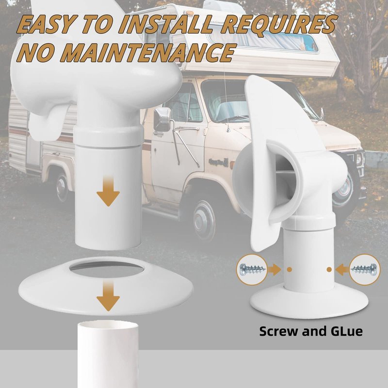 - COMPATIBLE WITH MOST RV SEWER VENTS - This RV plumbing vent cover slips over regular 1.5 inches PVC vent pipes. Also, works with adapters to fit other pipe sizes. Suitable for RVs, trailers, and campers.