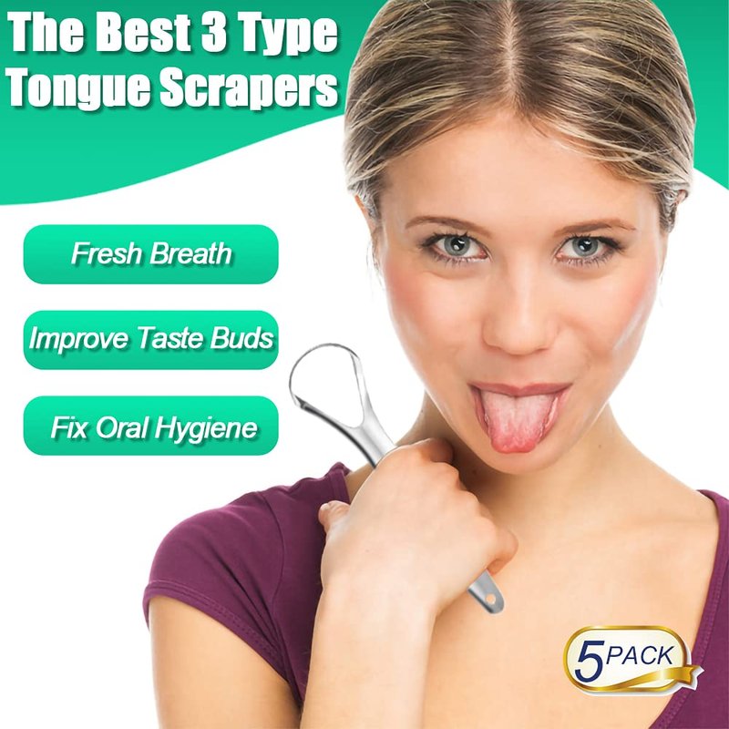 - [ 3 Type Tongue Scraper ] Three different shape tounge scrapper cleaner meet all your needs.