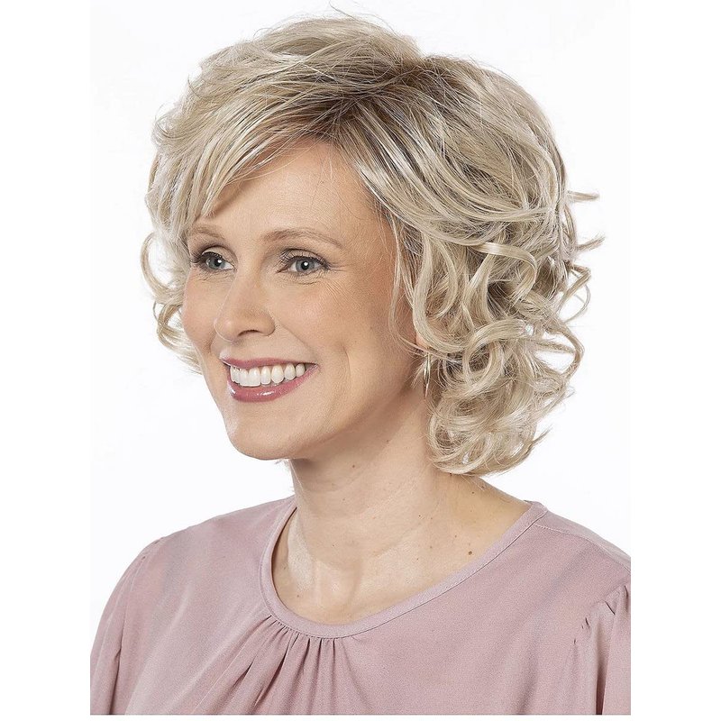Toni Brattin Gorgeous Avg Cap Color Red Blonde Wigs 5" Collar Length Short ChangeLite Heat Friendly Synthetic Wavy Side-Swept Bangs Women's Open Curls Adjustable Tabs Comfortable