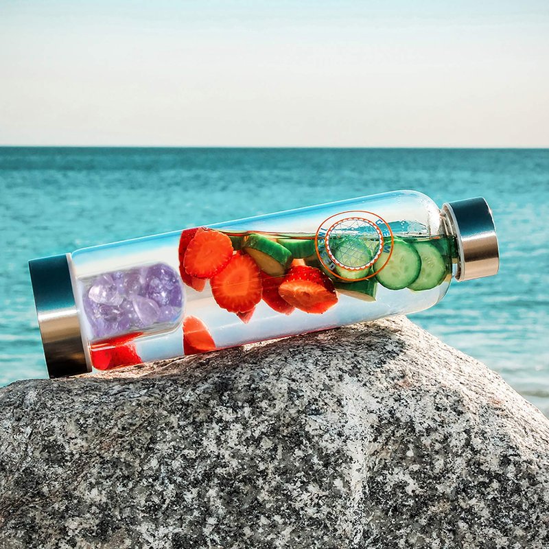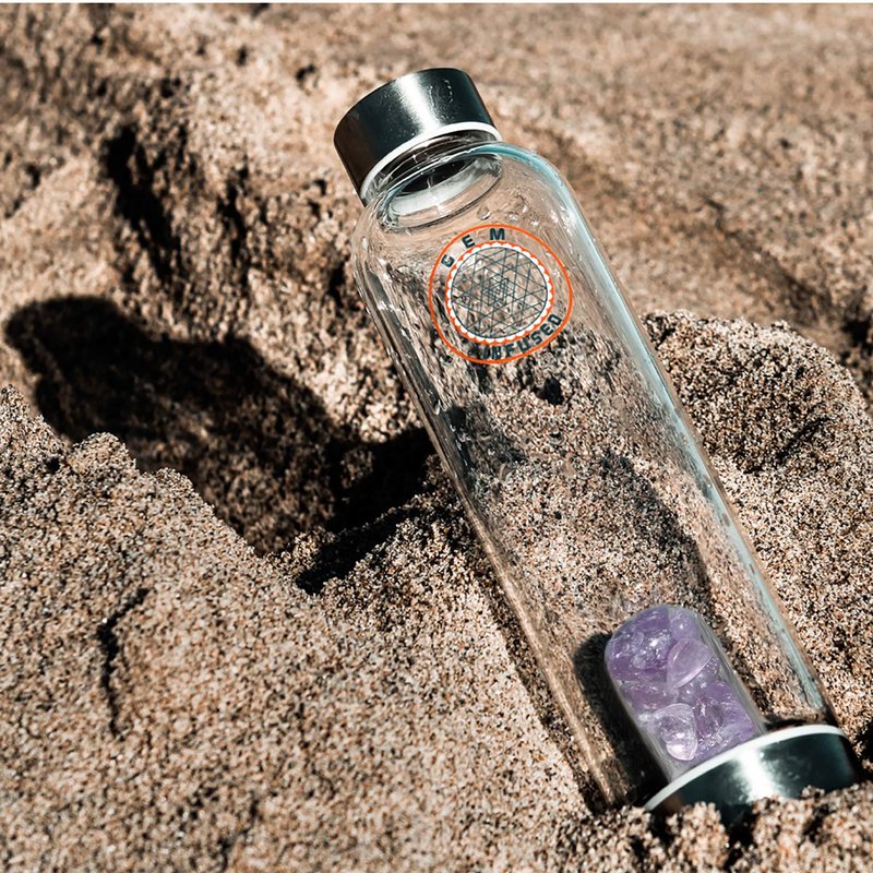 - PREMIUM QUALITY: Our water bottle comes with a leak-proof stainless steel lid and bottom and prevents harmful toxins from entering your water. It comes with a Neoprene carry sleeve to protect the water bottle. Can be used for hot or cold beverages. Simply unscrew the bottom, put the desired gem stone in the gem pod and screw it back. Fill the bottle with your preferred beverage and enjoy the benefits.