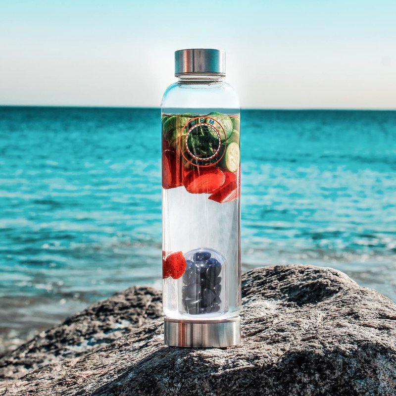 - PREMIUM QUALITY: Our water bottle comes with a leak-proof stainless steel lid and bottom and prevents harmful toxins from entering your water. It comes with a Neoprene carry sleeve to protect the water bottle. Can be used for hot or cold beverages. Simply unscrew the bottom, put the desired gem stone in the gem pod and screw it back. Fill the bottle with your preferred beverage and enjoy the benefits.