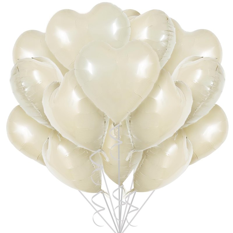 TONIFUL 30Pcs 18 Inch Cream White Heart Balloons Cream White Heart Shape Foil Mylar Balloons Decoration for Birthday Valentine's Day Wedding Bridal Shower Anniversary Engagement Party Supplies
