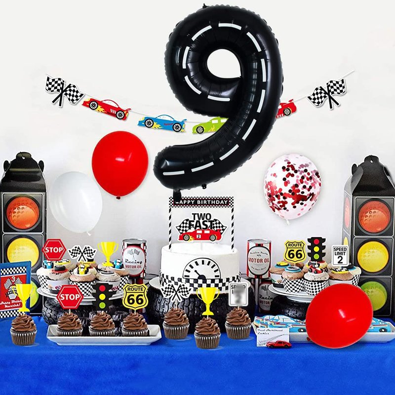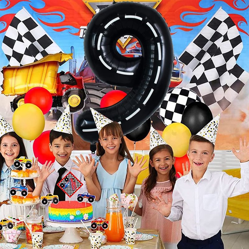 TONIFUL Race Car Black Balloons Car Birthday Party Supplies,40 Inch Giant Jumbo Helium Foil Mylar Big Number 9 Digital 9 Balloons for Boy's Birthday Party Truck Race Car Theme Party Decorations