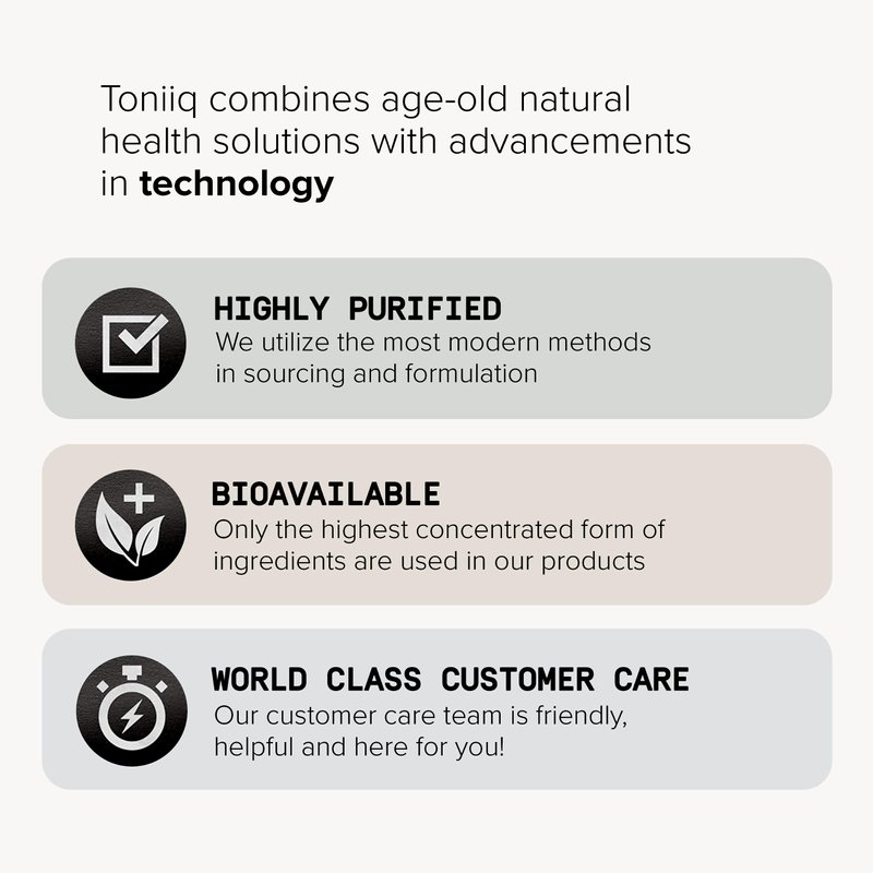 - Quality, First, and Foremost - Toniiq products are produced in a GMP-certified and NSF-approved state-of-the-art manufacturing facility right here in the USA.
