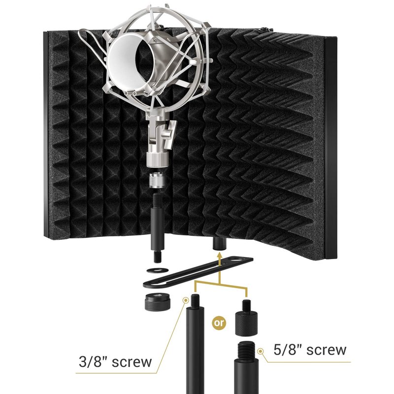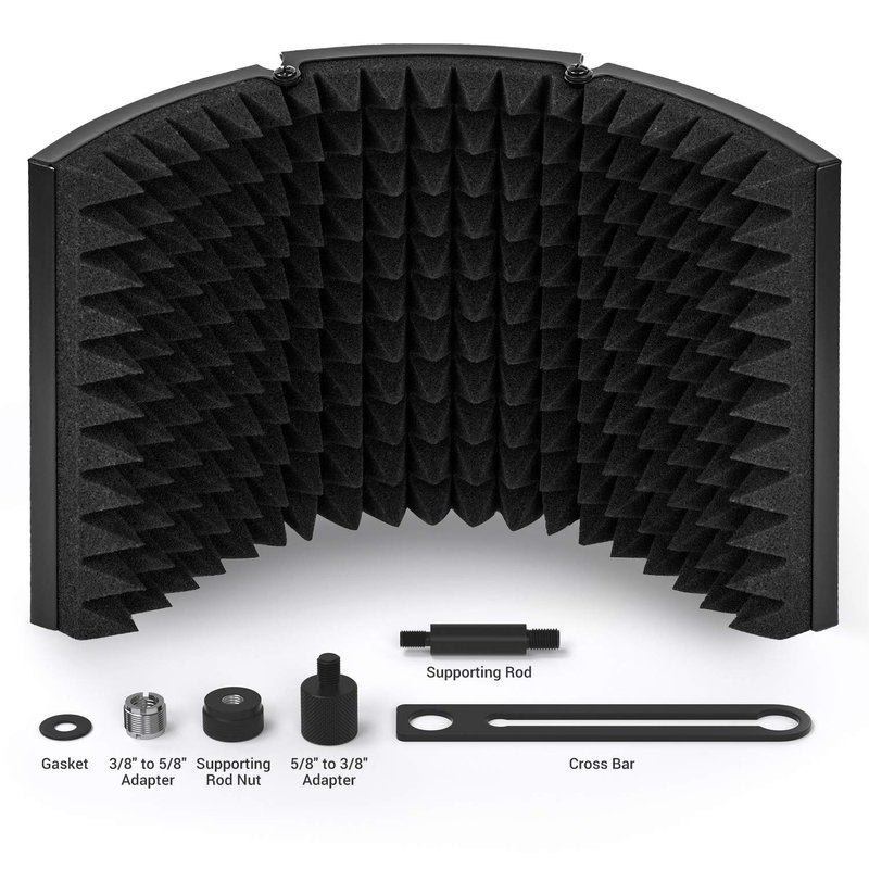 - Versatility: The microphone isolation shield can be fixed on a desk or tabletop, and also can be mounted to a microphone stand. Great for professional vocal/acoustic recording and podcasting sound booth.