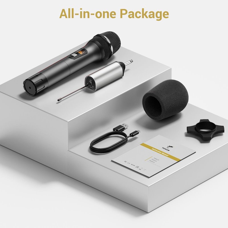TONOR Wireless Microphone, UHF Metal Cordless Handheld Mic System with Rechargeable Receiver, for Karaoke, Singing, Party, Wedding, DJ, Speech, 200ft (TW620), Black
