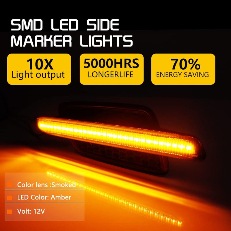- ♥ Package Include: one pair (L&R) of Smoked side marker lamps with instruction,90 DAY WARRANTY. If you have any questions after the purchase your case ,Please consult us ,will be taken seriously regardless of warranty period.(Note:Please make sure you have available space in your car for these lights to fit before placing order.)