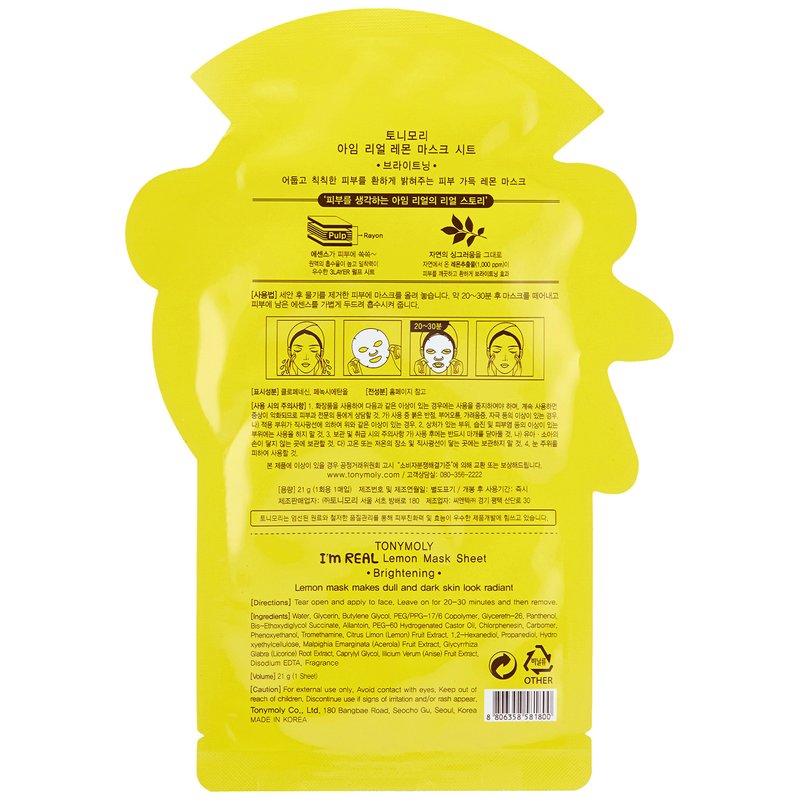 TONYMOLY I'm Real Lemon Sheet Mask, 10 Count - Hydrates Skin and Reduces Wrinkles