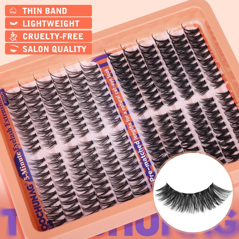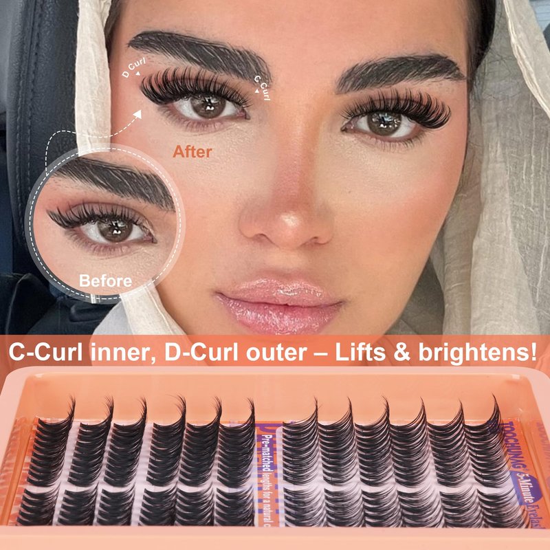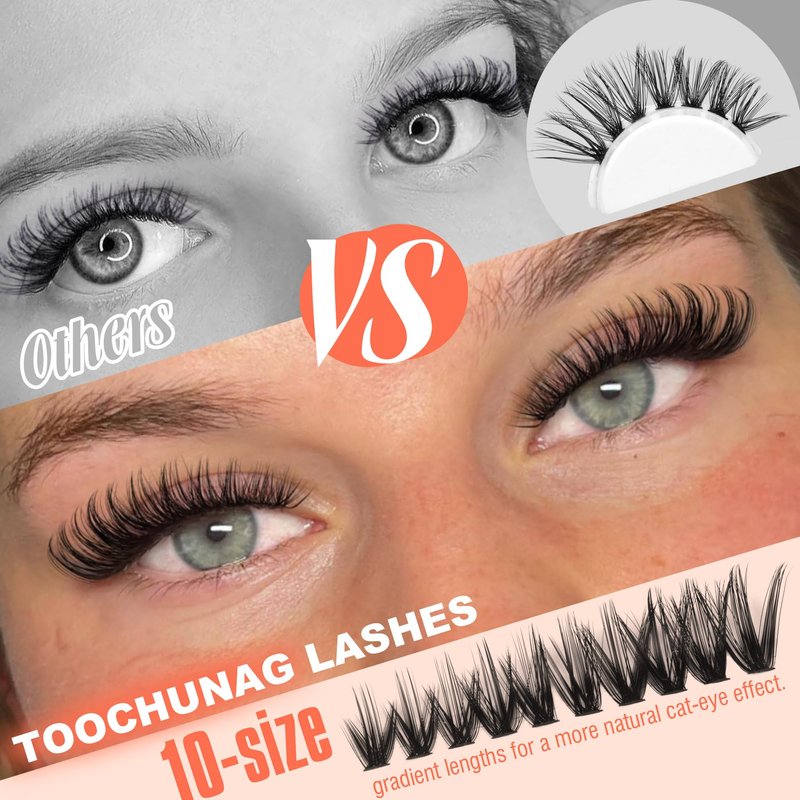 - Left&Right Eyelash Clusters Kit: Take your lash game to the next level with our pre-matched lash clusters kit, designed specifically for lash beginners. Say goodbye to uneven lengths and hello to natural-looking cat eye lashes in just 5 minutes.