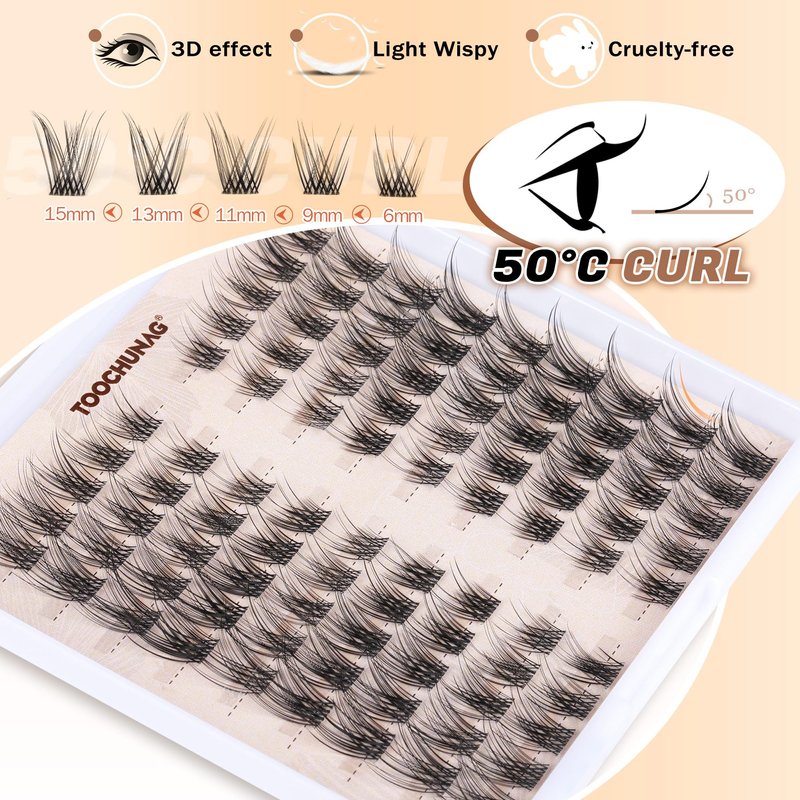 - C Curl Wispy Cluster Lashes: Open your eyes up with natural 50°C lash clusters! Just the right length and volume! It's perfect for wispy and textured individual eyelashes without going overboard.