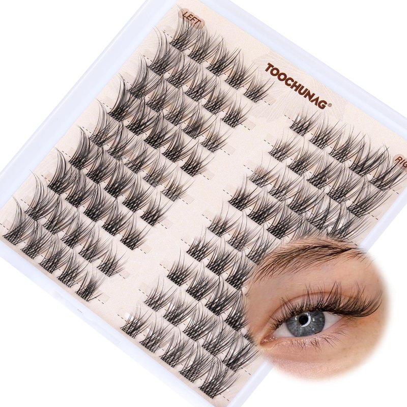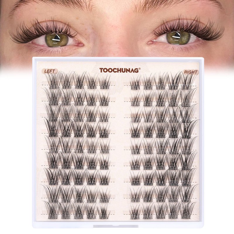 TOOCHUNAG Lash Clusters Natural Cluster Eyelash Extensions Wispy Eyelash Clusters Left&Right C Curl Individual Lashes 6-15mm DIY Cat Eye Lash Extension