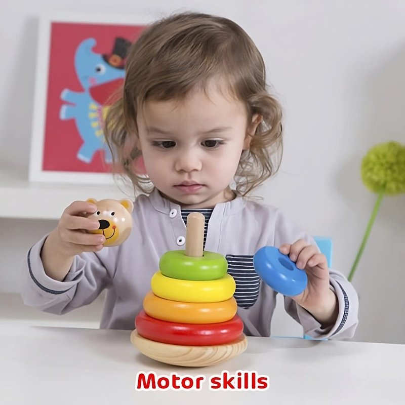 - This stacking toy helps children develop motor skills, hand-eye coordination and Color recognition
