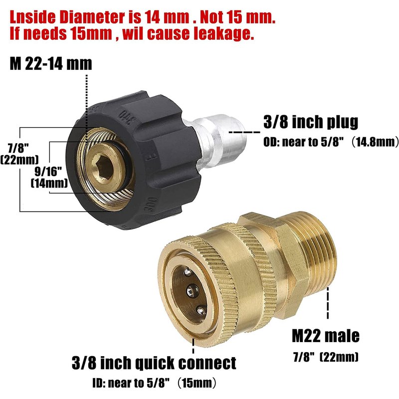 - If not sure your pressure washer needs M22 15mm or M22 14mm fitting, please contact with seller. M22-14 swivel + 3/8” plug, 3/8” quick disconnect + M22 14mm male.