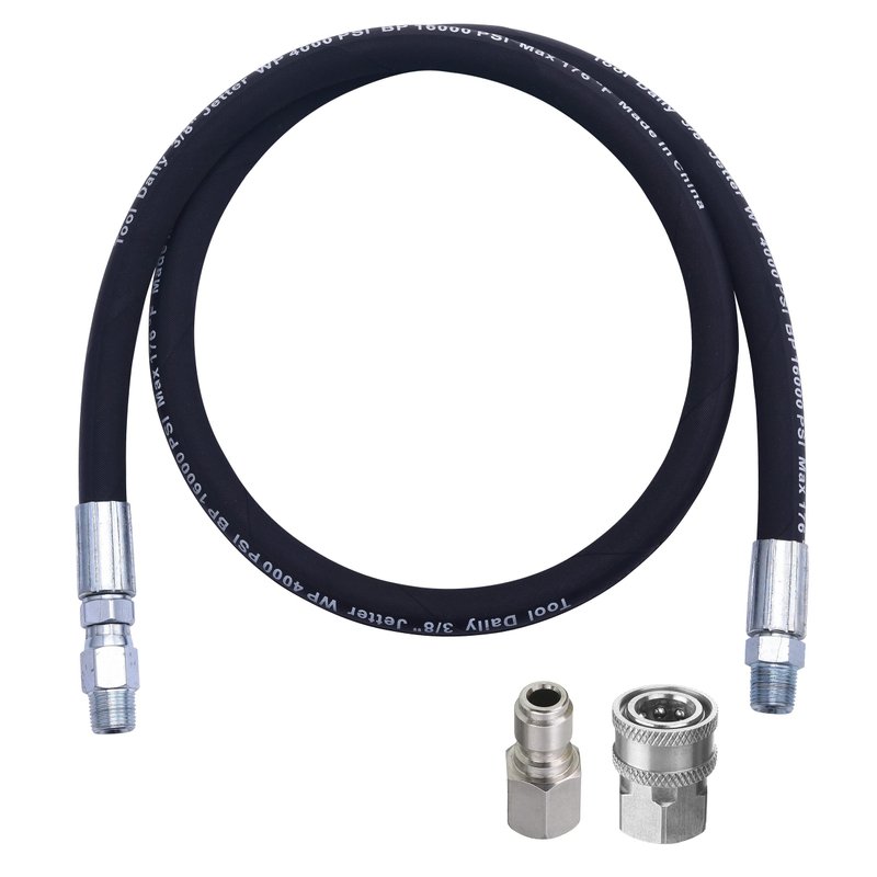 - Package include: 1 piece pressure washer jumper hose ( 4 FT ), 1 piece 3/8” quick connect plug + 3/8”female thread adapter; 1piece 3/8” quick connect socket + 3/8” female thread adapter.