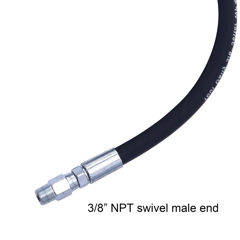 Jumper whip Hose has 3/8” NPT solid male end and 3/8” NPT swivel male end, fit most pressure washer hose reel.