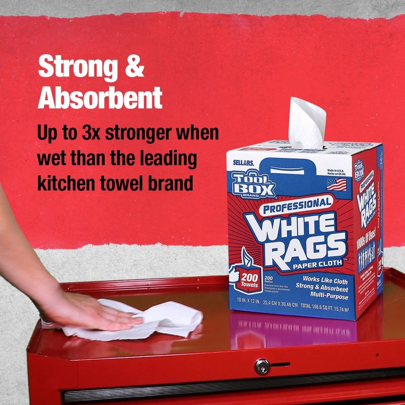 Toolbox Painters White Rags Shop Towels with Center Pull Box - 1 Count Box - 200 Towels