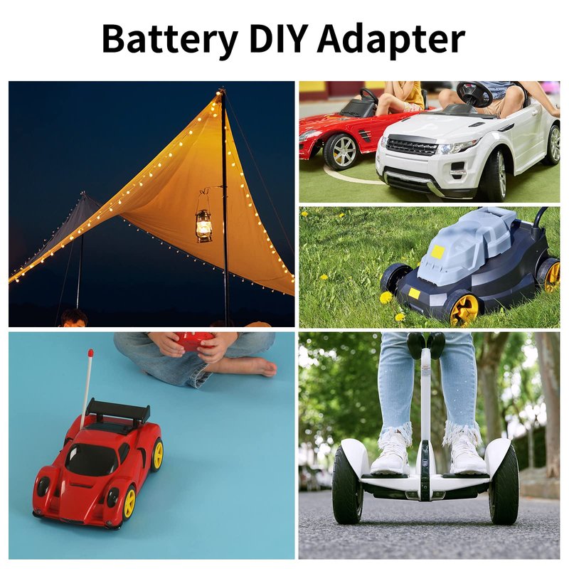 - Enjoy the DIY: Power Adapter is widely used in power wheels, motors, auto trucks, robotics, toys, golf carts, led strip lights, electric fans, screens, monitoring systems, solar panels and other DIY.