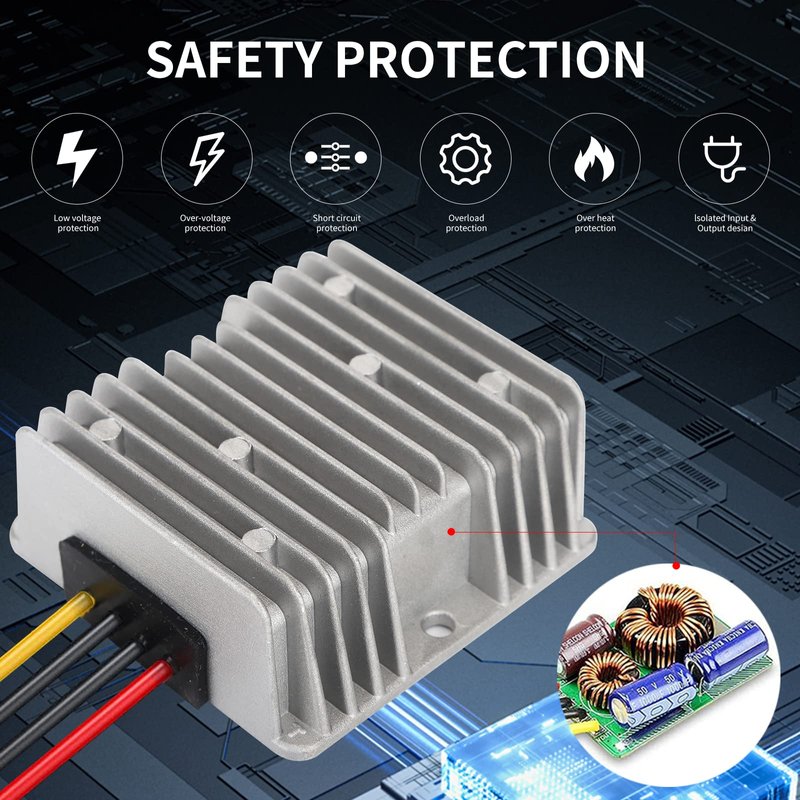 - High Conversion Efficiency: This voltage converters built in over low voltage protection.Synchronization rectification technology-multiple intelligent protection function with high conversion efficiency and stability. The conversion efficiency may reach 96%.