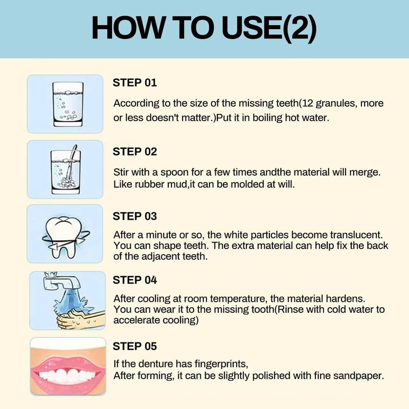 - Instant fix: The moldable beads can be shaped to fit your tooth.Natural color is easy to clean and suitable for most people like an appointment, meeting, reporting, party, or gathering