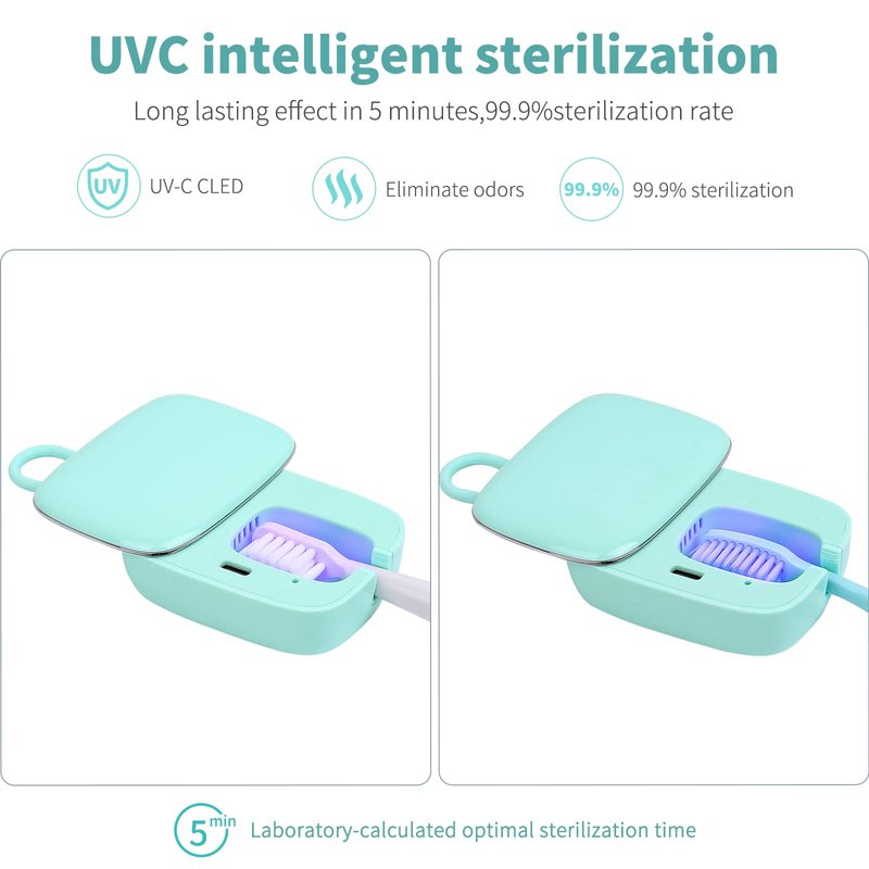 - 【99.9% CLEANING】- This toothbrush travel case can eliminate up to 99.9% of invisible harmful substances in the toothbrush, the toothbrush case has cleaning light, a built-in fan and a heating plate, effectively eliminating typical bathroom problems, helping you to have a better Oral Health!