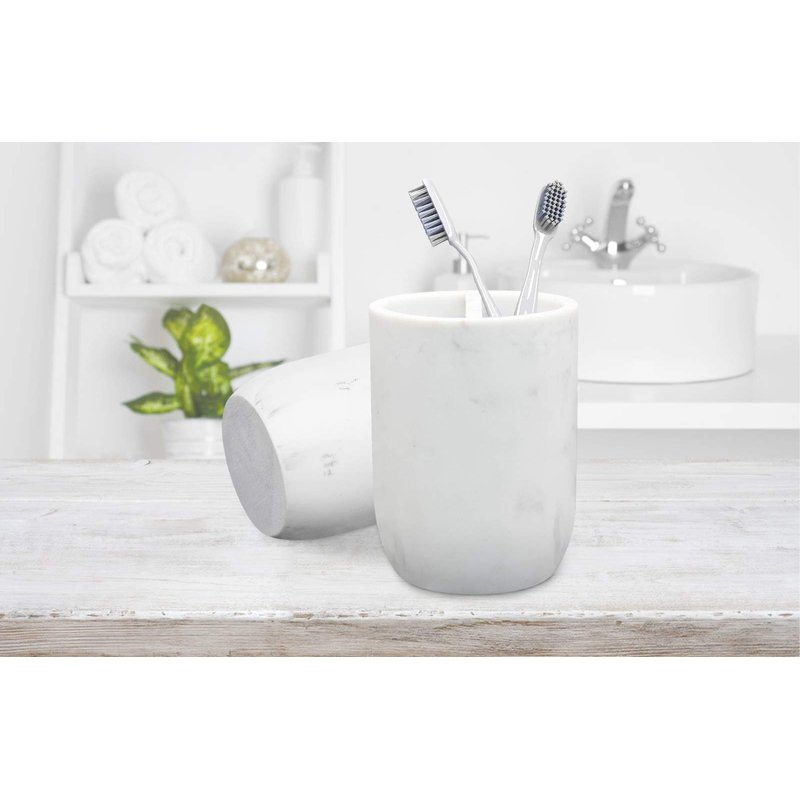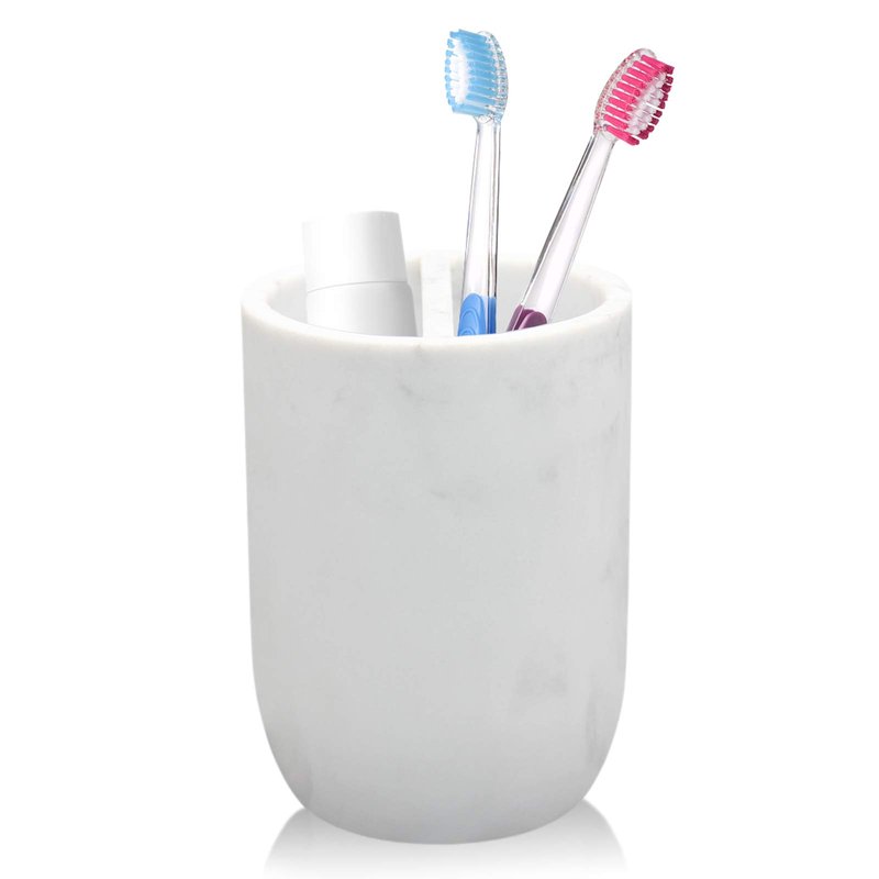 - 【Elegant Toothbrush Holder】➤Crafted from resin, it features a white,marble-like design with slight gray/ black streak in it and streamlined silhouette for a modern feel with a touch of glamour in your master bath or powder room.