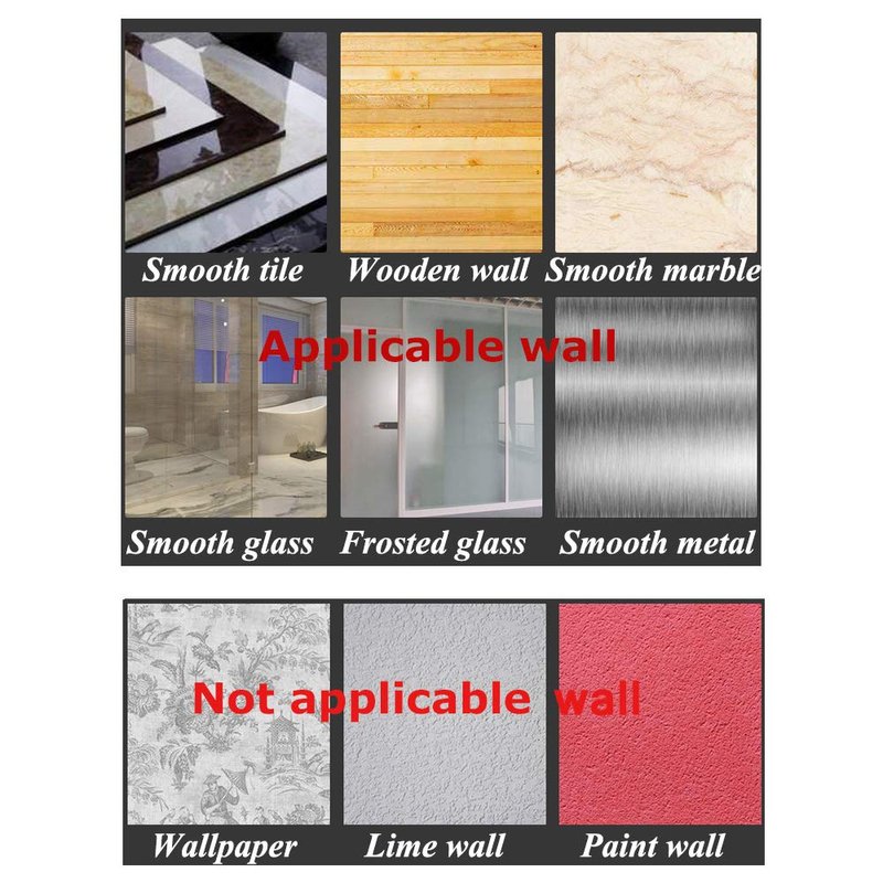 Applicable wall: smooth tile, wooden wall, smooth marble, smooth glass, frosted glass, smooth metal.