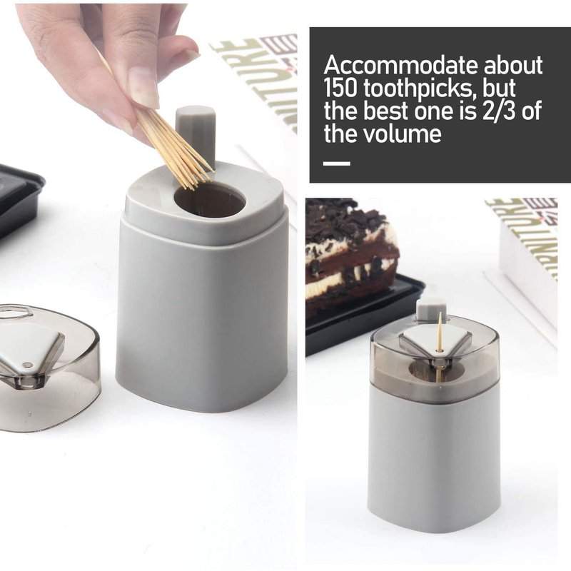 Toothpick Holder Dispenser, Pop-Up Automatic Toothpick Dispenser, Toothpick Storage Box (Grey)