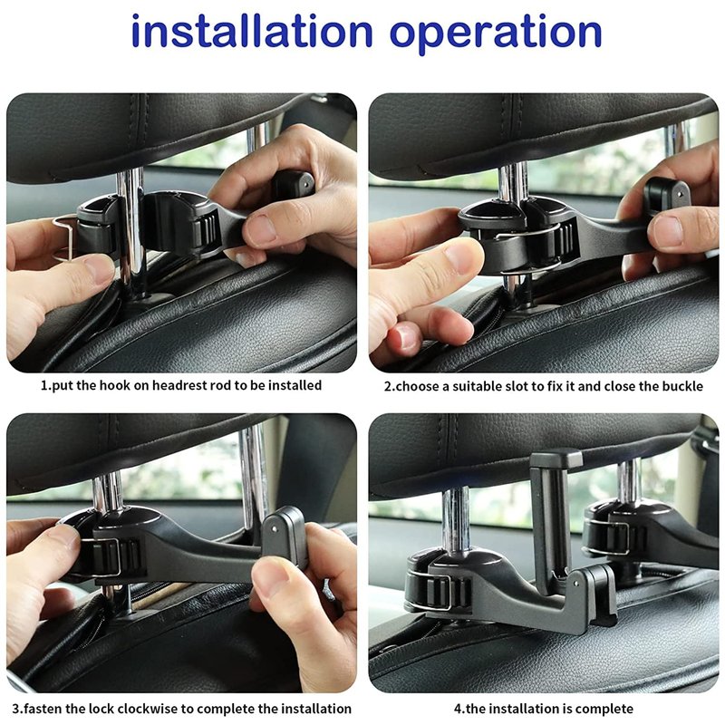 - 360°Rotation, Clean and Safe: The headrest hooks can be rotated 360 degrees horizontally after installation. By rotating, the car headrest hook can be used in the front seat or backseat, and the locking feature keeps it securely in place.