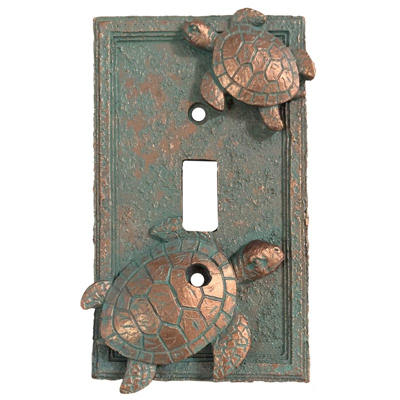 Add a little sea turtle decor to your favorite room with these easy to install Sea Turtle electrical covers from Top Brass Home Decor. Made from hard, durable poly-resin material with a beautiful bronze / verdigris finish. Mounting screws included!