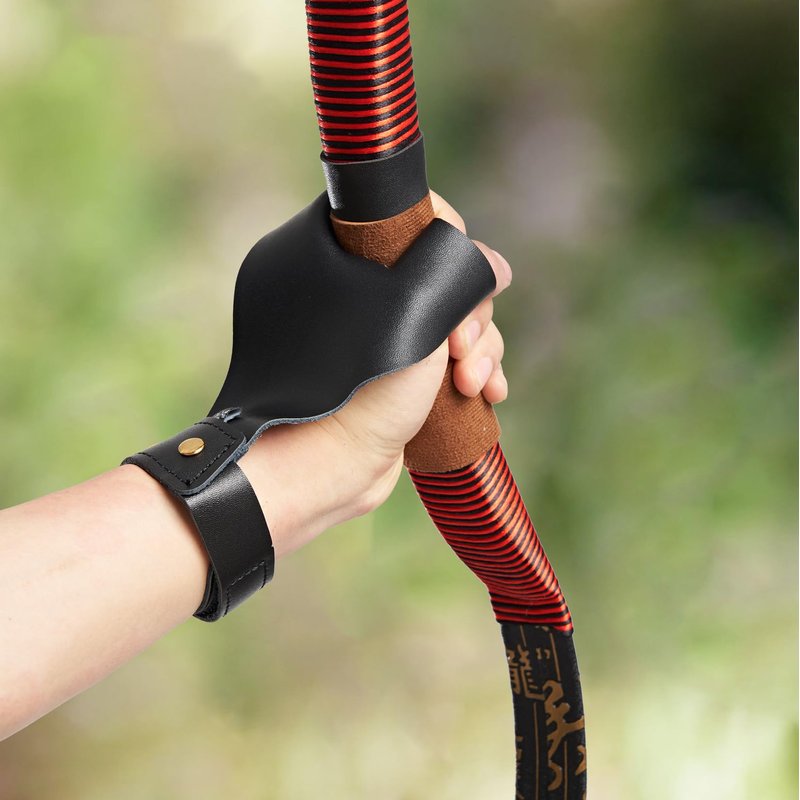 - PRODUCT FEATURES - The hand guards length: 16.5cm /6.5 inch, width: 10.5cm/4.1inch; finger width: 4cm/1.57inch. net weight: 34g. Ideal archery accessories for left hand. Suitable for traditional bows, Mongolian bows, longbows, etc.
