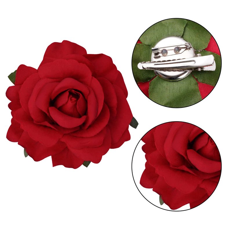 - Fabric Rose Hair Flowers Clips: The red rose is made of fabric, the hairpin and brooch are made of metal. layered durable flower, adorable and elegant, non slip and easy to use, keep the hair stylish all day.