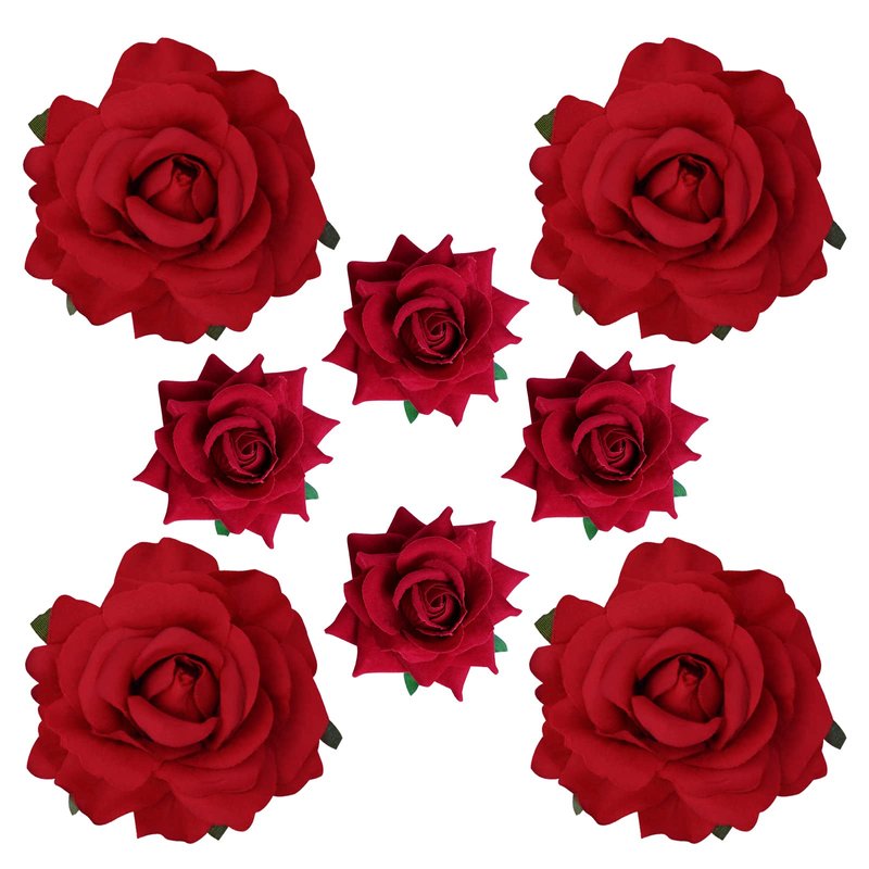Specification: Quantity: 8 pcs rose flower hair clip Color: red Style: 2 kinds Flower diameter: 7cm/ 2.76 inch, 10 cm/ 3.9 inch Brooch Size: 2cm/ 0.79 inch Hairpin Size: 4cm/ 1.57 inch Package Include: 8 x Red rose flower clips brooch (2 Sizes) Usage: Hairpin Hair Clips Rose Flower Brooch Application : Occasion: Wedding ceremony, Halloween costume, birthday, cosplay, festival, travel, beach, photograph, party or daily use. Gift: birthday, halloween, thanksgiving day, Christmas, valentines day, new year, wedding, etc. Accessory: bridesmaid, cloth, caps, handbags, shoes, headbands, headpieces, wedding ceremony, etc. Note: Manual measurement, slight error in size, please understand, thanks.