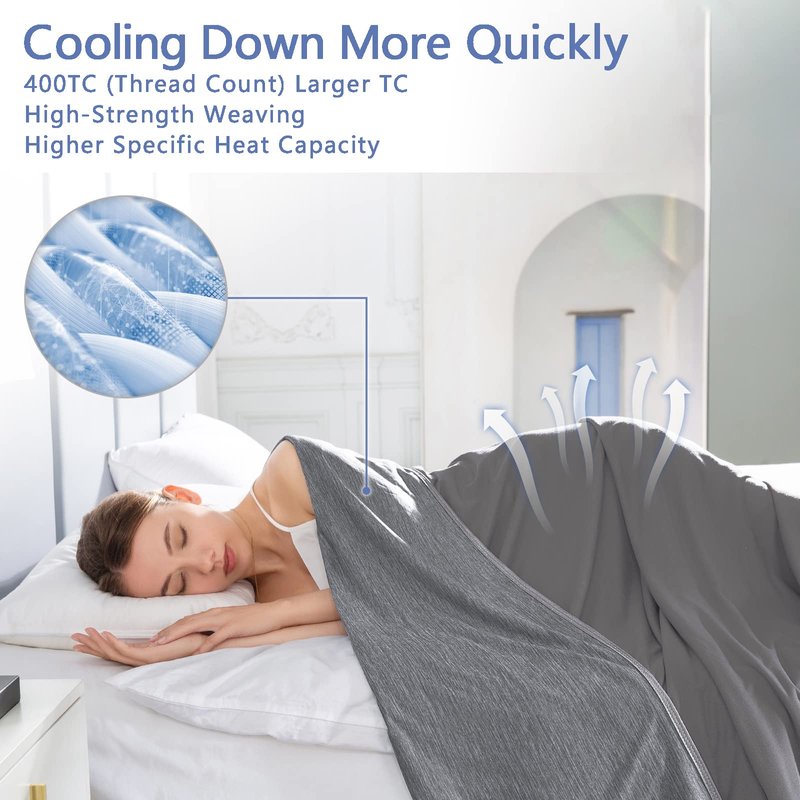 - Special Weaving Method: Due to Topcee factory adopted a high-strength special weaving method,our cooling fiber can reach to 400TC (other cooling fabrics can only meet 300TC),which makes it have higher specific heat capacity,so Topcee's cooling blanket can keep cool for a longer time,rather then for an instant of coolness.
