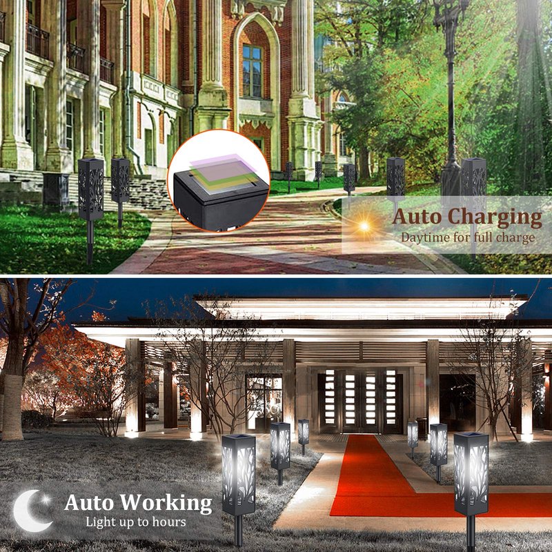 - Floral Hollow Solar Pathway Light .The appearance adopts the hollow design, adding a beauty and elegance. In the evening, under the flickering light, your courtyard will become a beautiful scene.