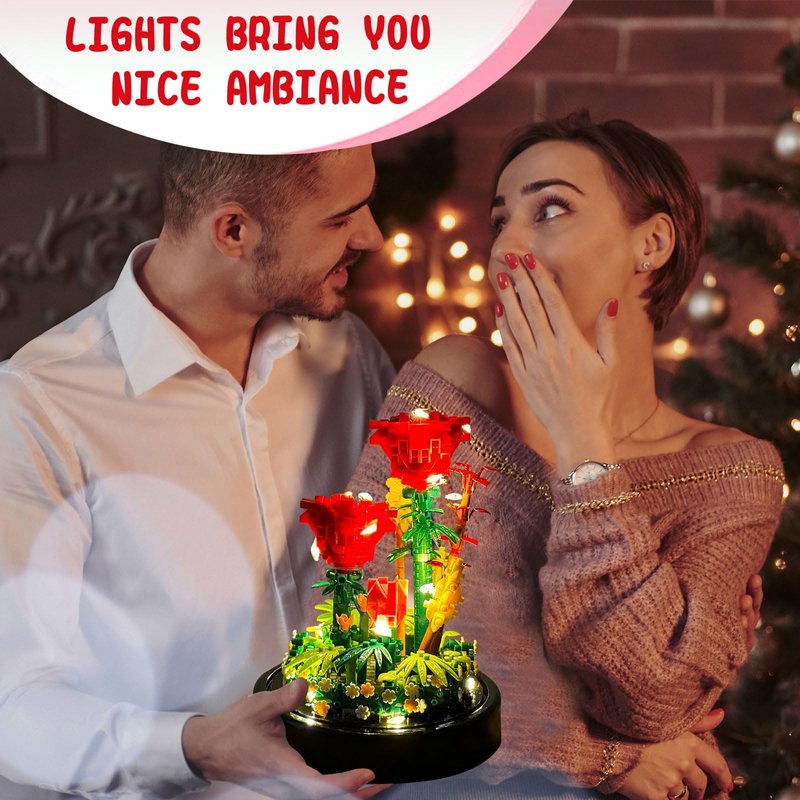 - BEAUTIFUL FLOWER BOUQUET BUILDING SET WITH LIGHT With LED string light, just push the on/off button, the bright flower bouquet building set pop out at you at night, it looks very beautiful and colorful at night, bring joy and relaxation to you.