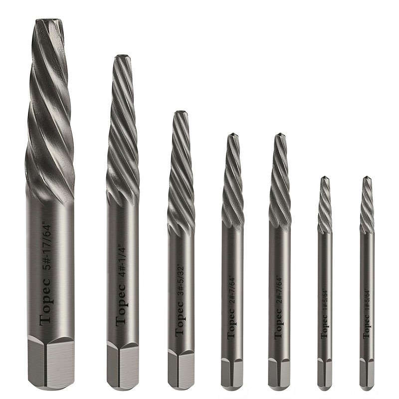 TOPEC Damaged Screw Extractor Set, 7 Piece Easy Out Bolt Extractor for Easily Remove Broken Bolts, Stripped Screws, Studs