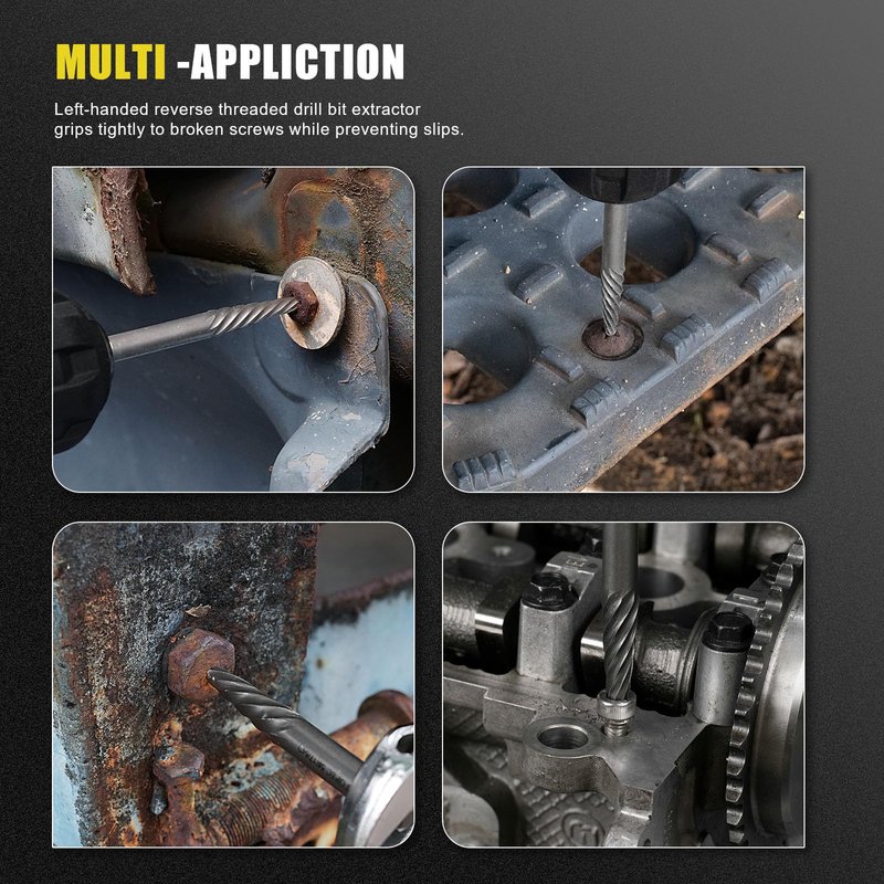 - 【VERSATILE】: Our screw extractor set can be used to remove rusty, damaged, or broken bolts, screws, and fasteners of all sizes and types. This makes the set ideal for automotive repair, home improvement, and construction projects.