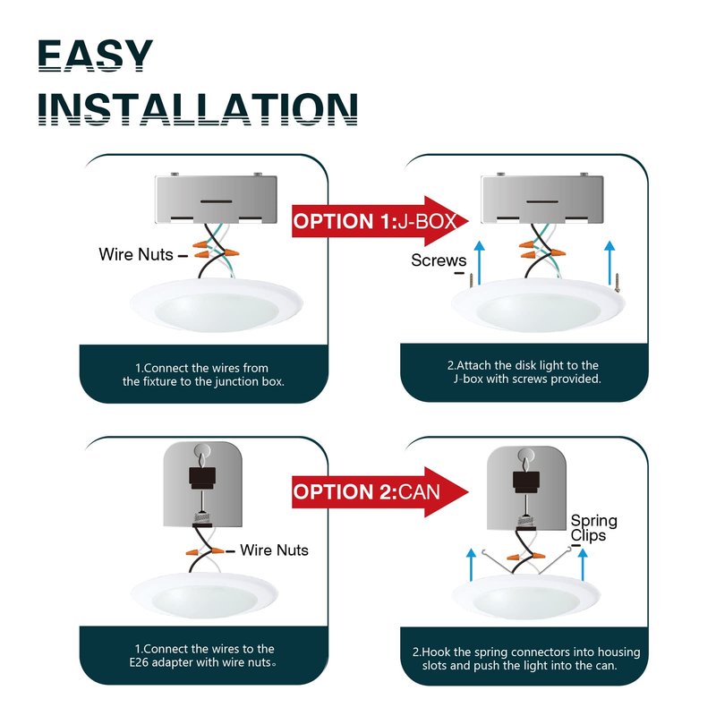 - 【EASY INSTALLATION】4000K LED recessed light can be installed into any 5/6 inch Recessed Can, or 4"/6" Junction Box. Accessories for both installation options are provided with each purchase. The ultra-thin design provides a simple but elegant view making it. Ideal recessed lighting solution for new construction as well as retrofit. Hassle-free, the installation can be completed in minutes.
