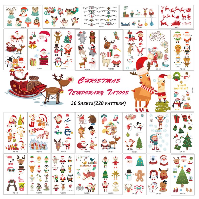 - Quantity: Contain 228 pcs Tattoos, Pack of 30 Sheets Christmas Party Temporary Tattoos; Size:10.5*6cm; With these Cute Stylish Christmas Theme Temporary Tattoos, Both Children and Adults can Get Great Fun