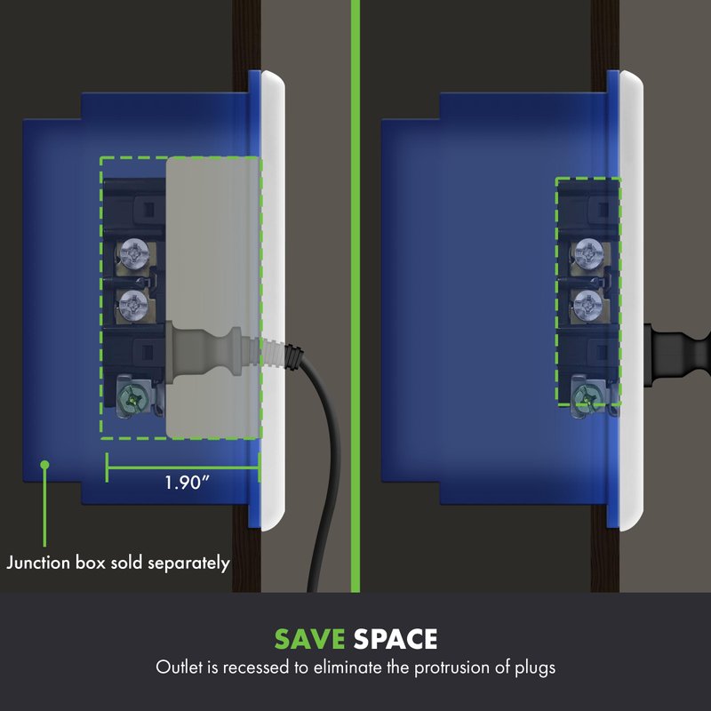 - PROFESSIONAL LOOK: Recessed receptacles will allow flat screen TVs, A/V equipment, clocks, artwork, or entertainment consoles to be positioned closer to walls so your TV or other devices would have a professionally installed look