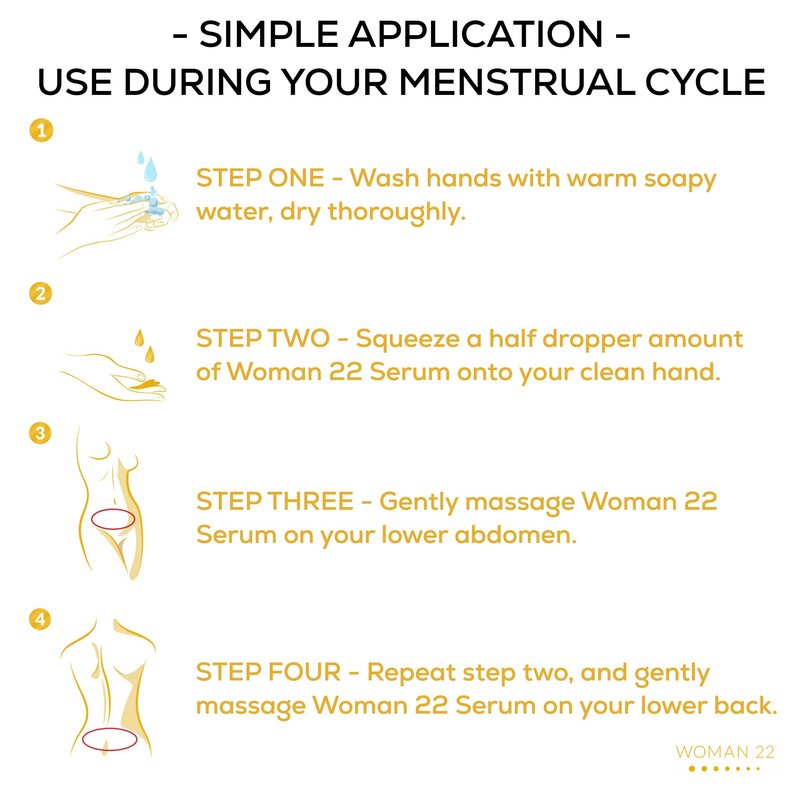 USE DURING YOUR MENSTRUAL CYCLE – Massage the luxurious Serum on your lower abdomen and lower back during your cycle - Soothing, Fast-Acting, Effective