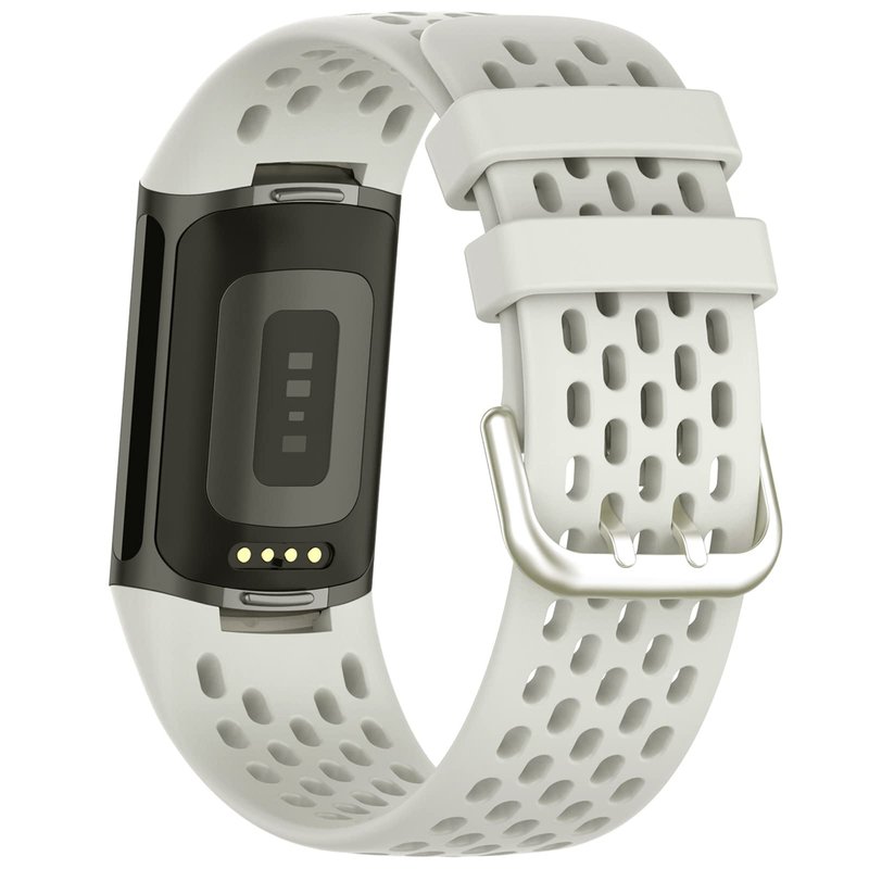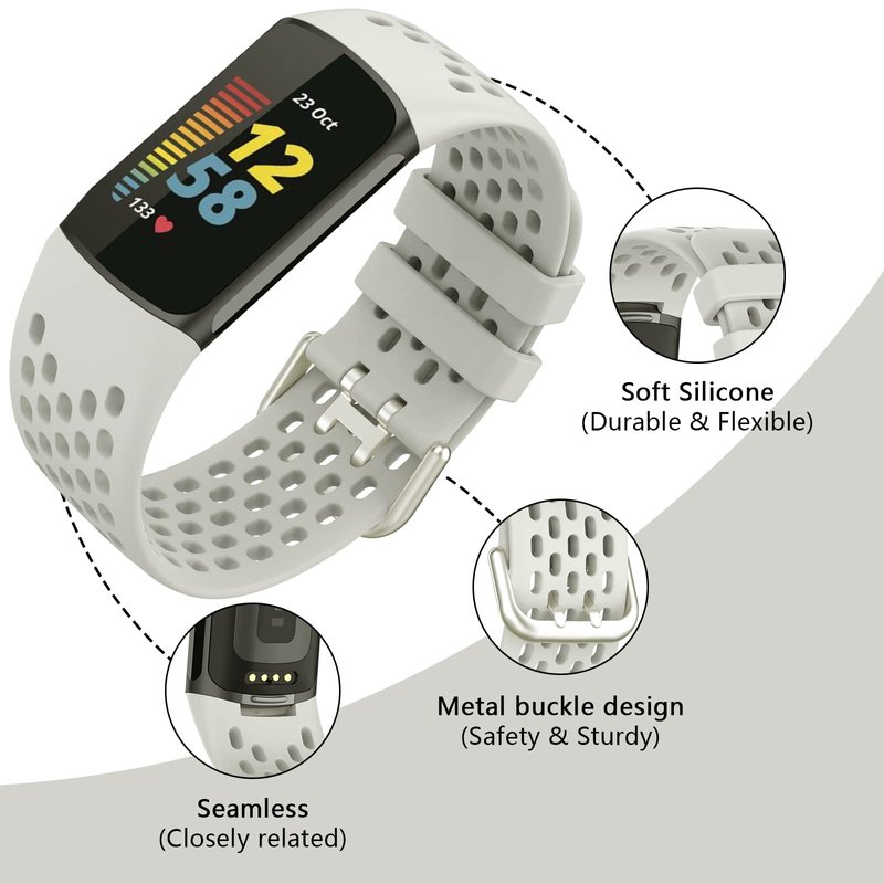 TopPerfekt Sport Bands Compatible with Fitbit Charge 5, Adjustable Breathable Soft Silicone Sport Replacement Watch Straps Wristbands Bracelet for Charge 5 Activity Tracker Women Men (1-Lunar White)